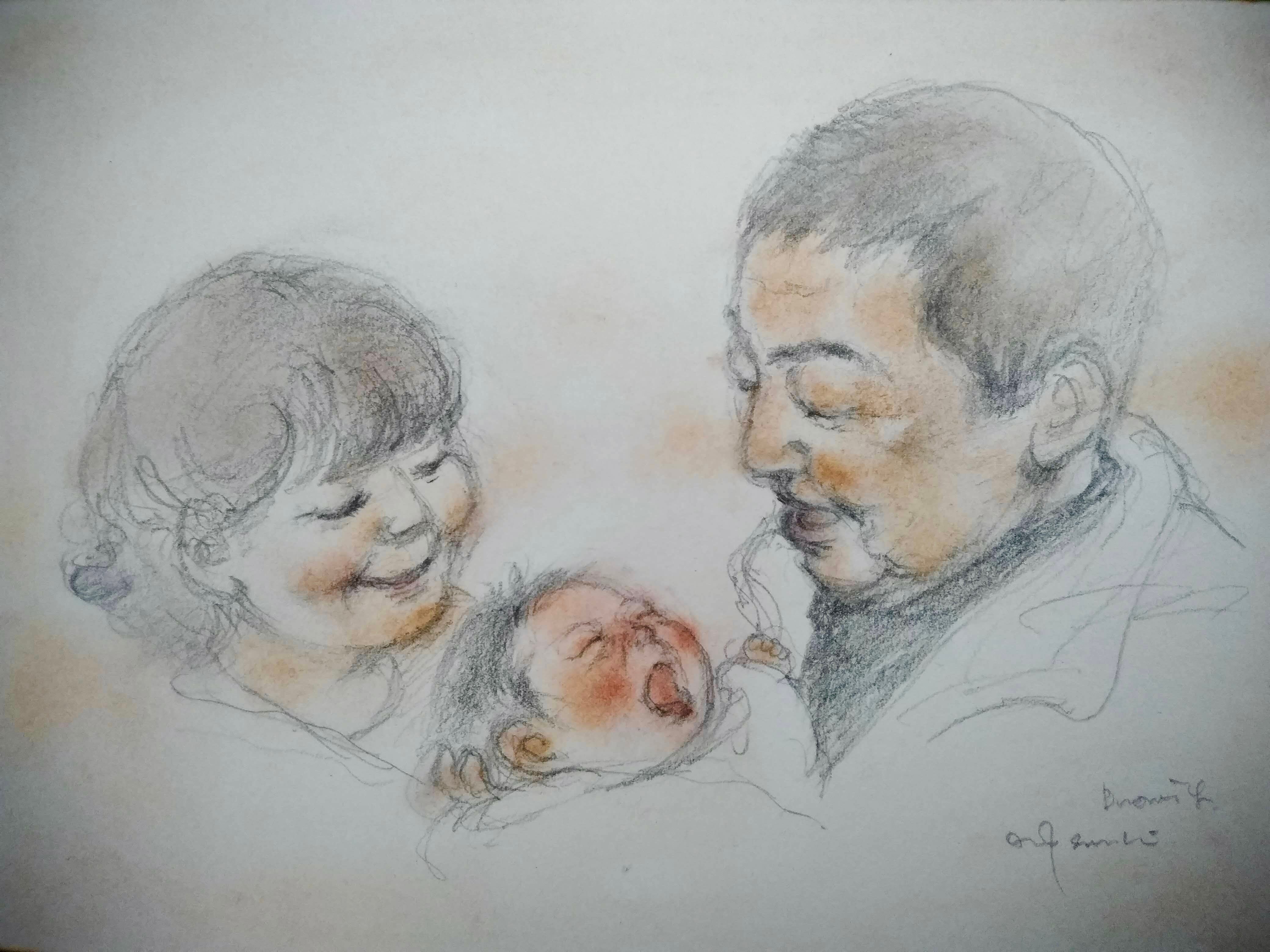 お写真からの似顔絵受注制作になります。(お写真は複数枚からの合成で描けます。)