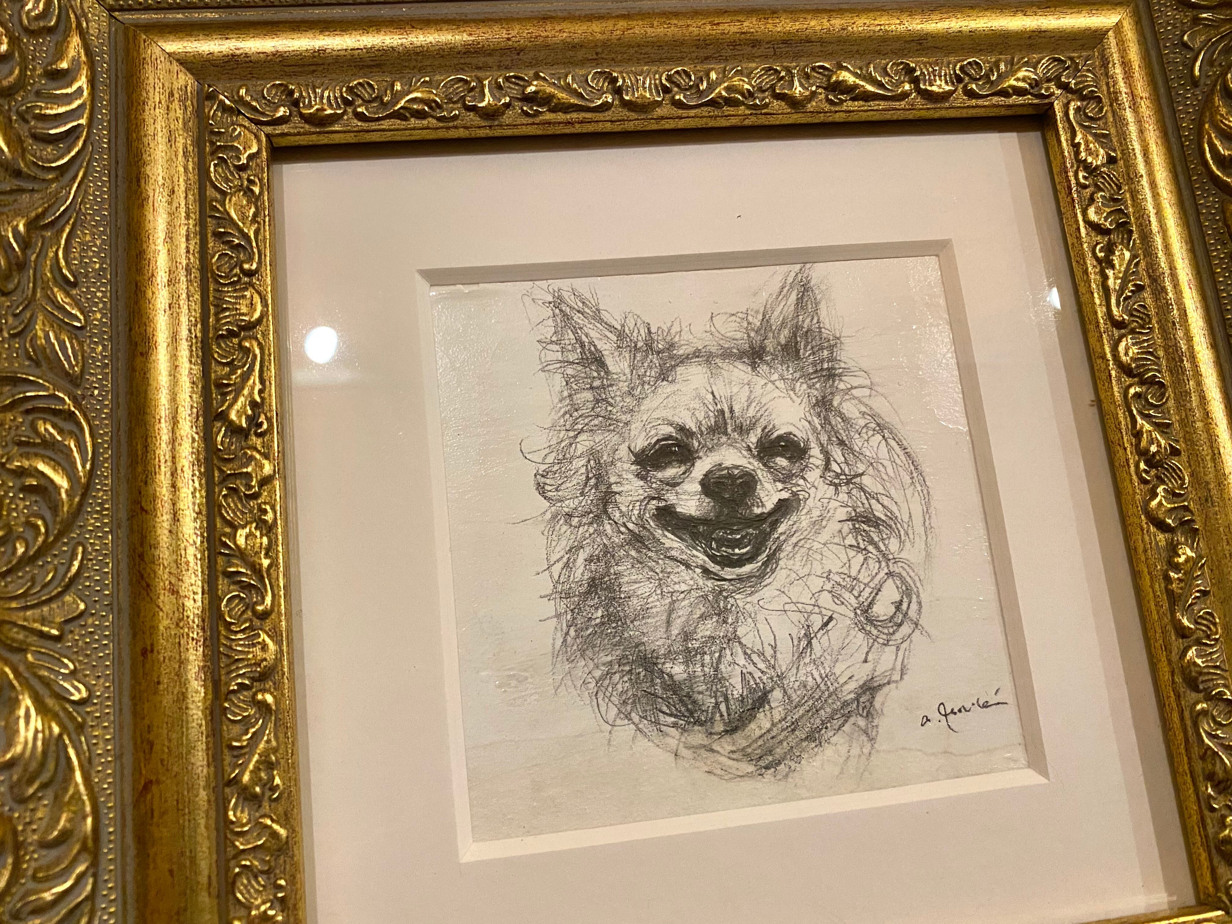 作品タイトル【チワワ アンティーク風額付きデッサン】 鉛筆デッサンで描いております。動きのある元気な表情が特徴です。 サイズ・額外枠 縦26cm×横26cm 額縁は新品ではございません。絵画と共に時を経てきた現状のものを一緒におつけしております。