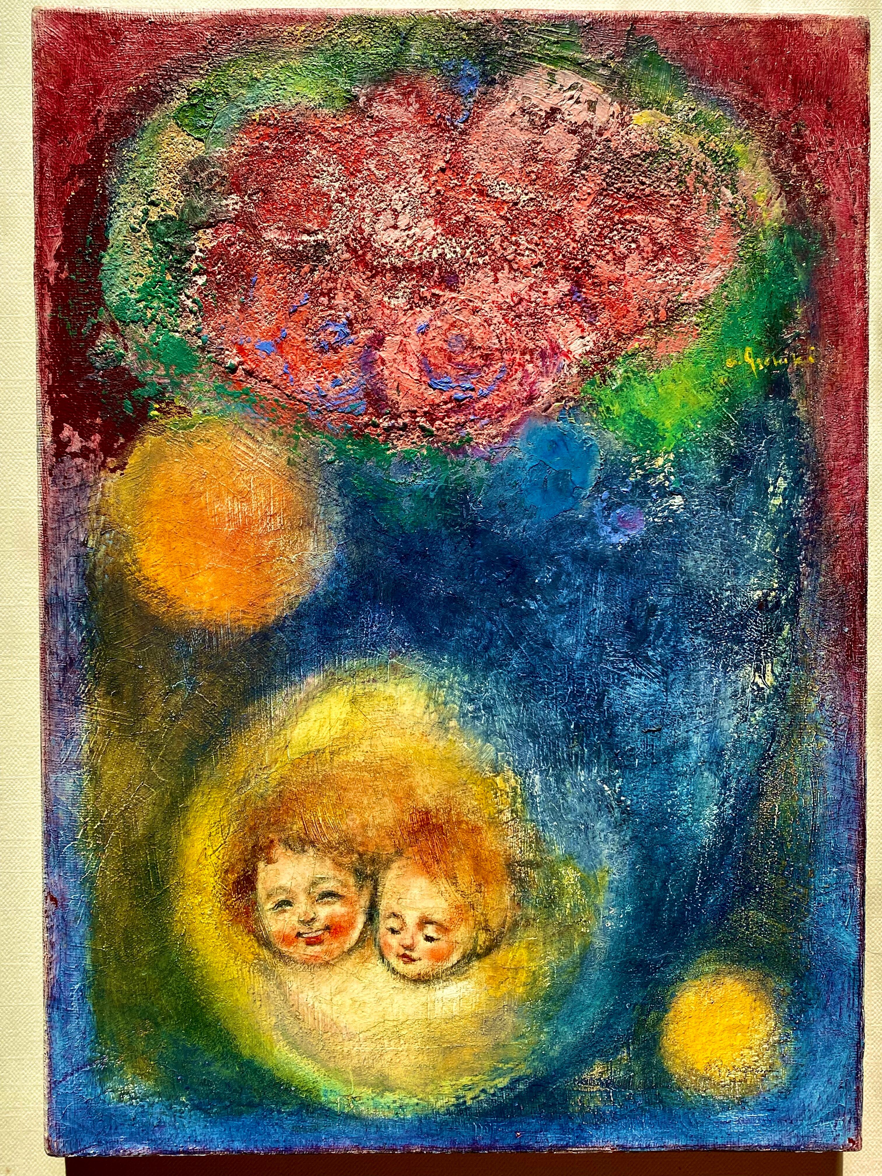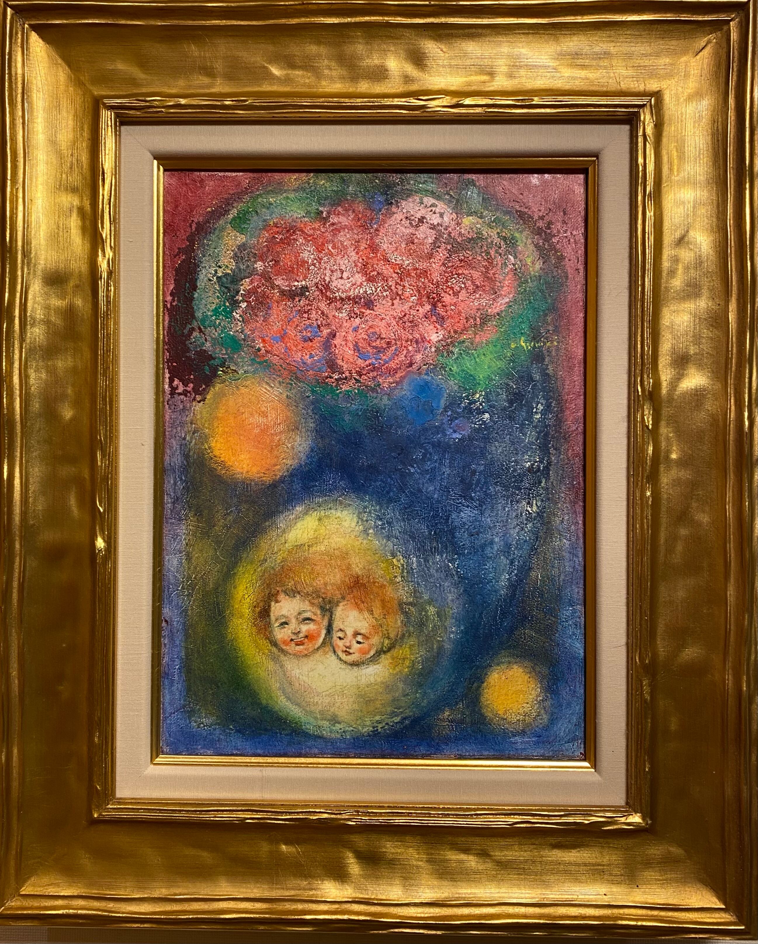 作品タイトル【よりそう】 この広い宇宙で誰かとよりそっている感覚。それはとても嬉しいことだと思います。この絵があなたの『よりそう』になれば私も嬉しいです。 サイズ・額外枠 縦35cm×横31cm 厚み8cm 額縁は新品ではございません。絵画と共に時を経てきた現状のものを一緒におつけしております。
